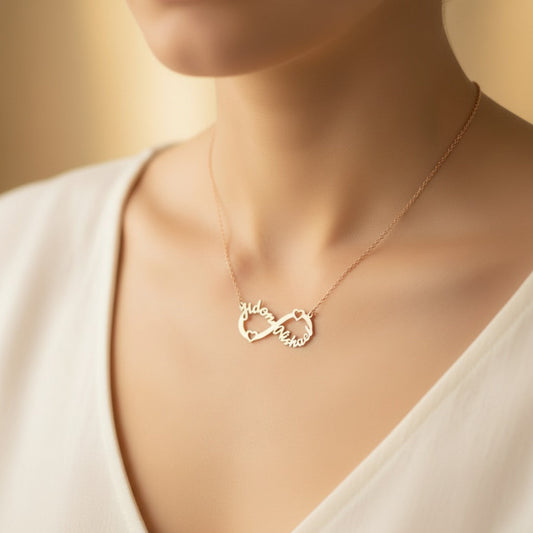 Personalised Infinity Necklace with 2 Names in 92.5 Sterling Silver