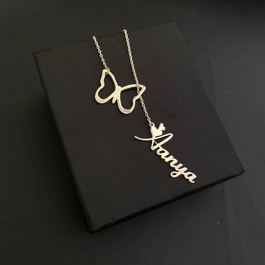 Personalised Name Necklace Dangling through Butterfly in 92.5 Sterling Silver