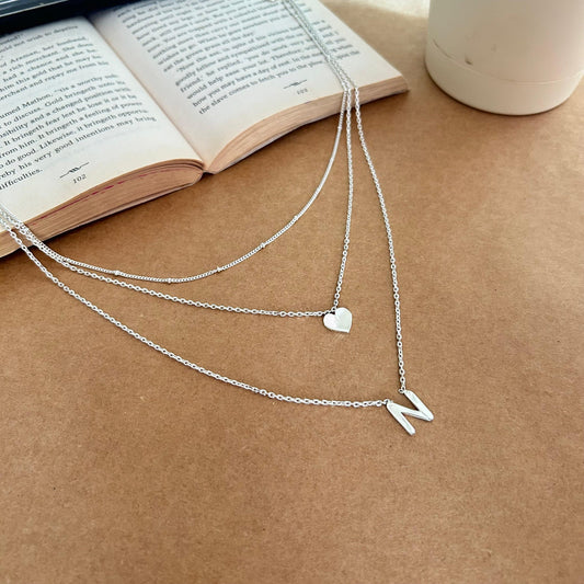 3-Layer Chain with Initial and heart in Sterling Silver - | Liyana Jewels